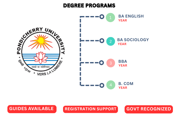 MyCampus offers recognized and flexible distance education degree programs in collaboration with leading institutions such as IGNOU (Indira Gandhi National Open University), Sree Narayana Guru Open University (Kerala), and Pondicherry University. These programs are ideal for students and working professionals who wish to pursue undergraduate or postgraduate education without the need to attend regular classes. With complete admission support and expert academic guidance, MyCampus ensures a smooth and credible learning experience from the comfort of your home.